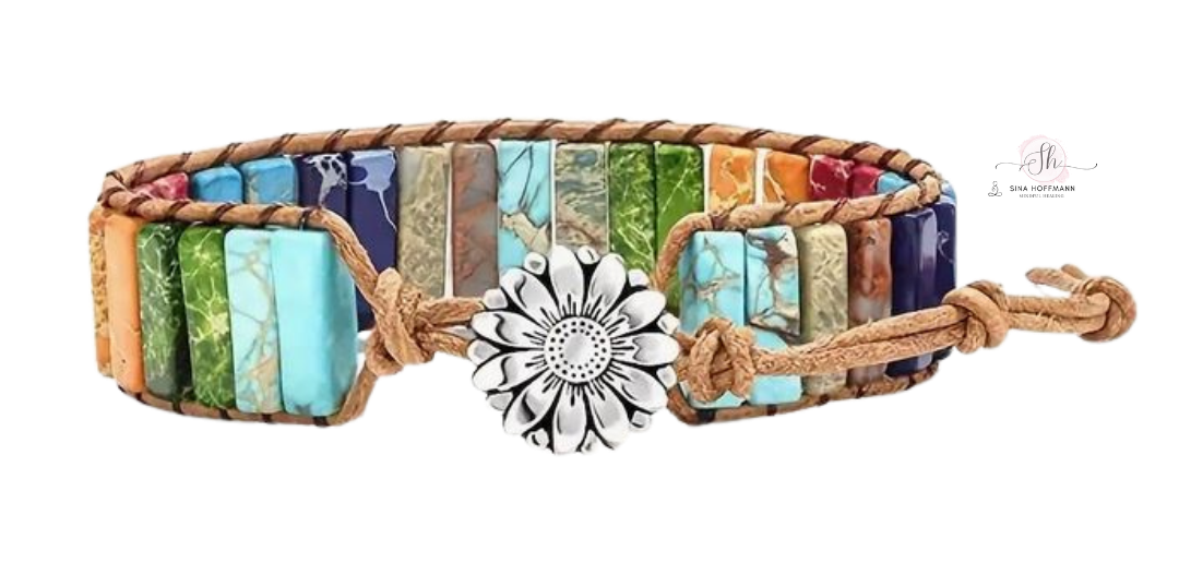 Dieses wunderschöne Chakra-Armband wurde liebevoll in Handarbeit aus regenbogenfarbenen Natursteinen gefertigt. Es ist nicht nur ein echter Blickfang, sondern kann auch positive Energie, Freude und Ausgeglichenheit in Ihr Leben bringen.